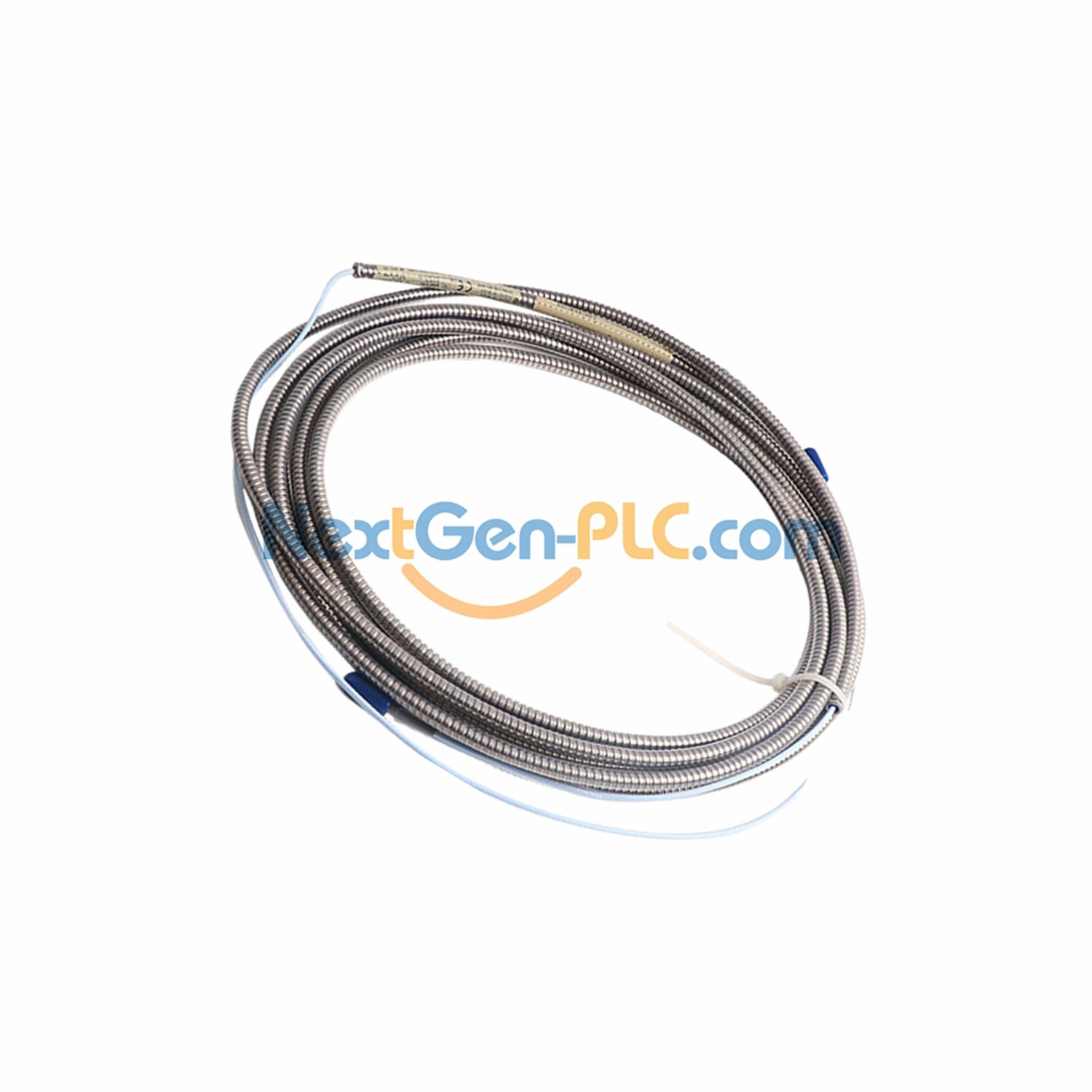 A U.S.-made extension cable for 3300 XL 8mm proximitor sensors. Features an armored design with connector protectors for extra durability. Includes silicone tape (not for turbine oil areas).