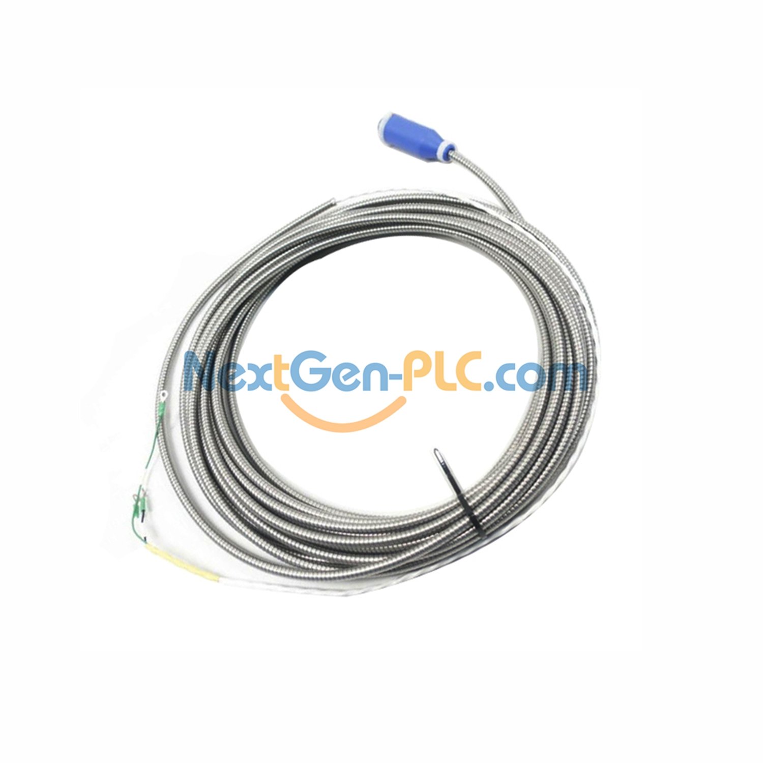This **Bently Nevada 84661-07** cable connects sensors to monitors. It has **two wires with a shield and armor** to block noise. One end has a **weather-proof plug**, the other has **easy-to-attach lugs**. Works well in tough places.