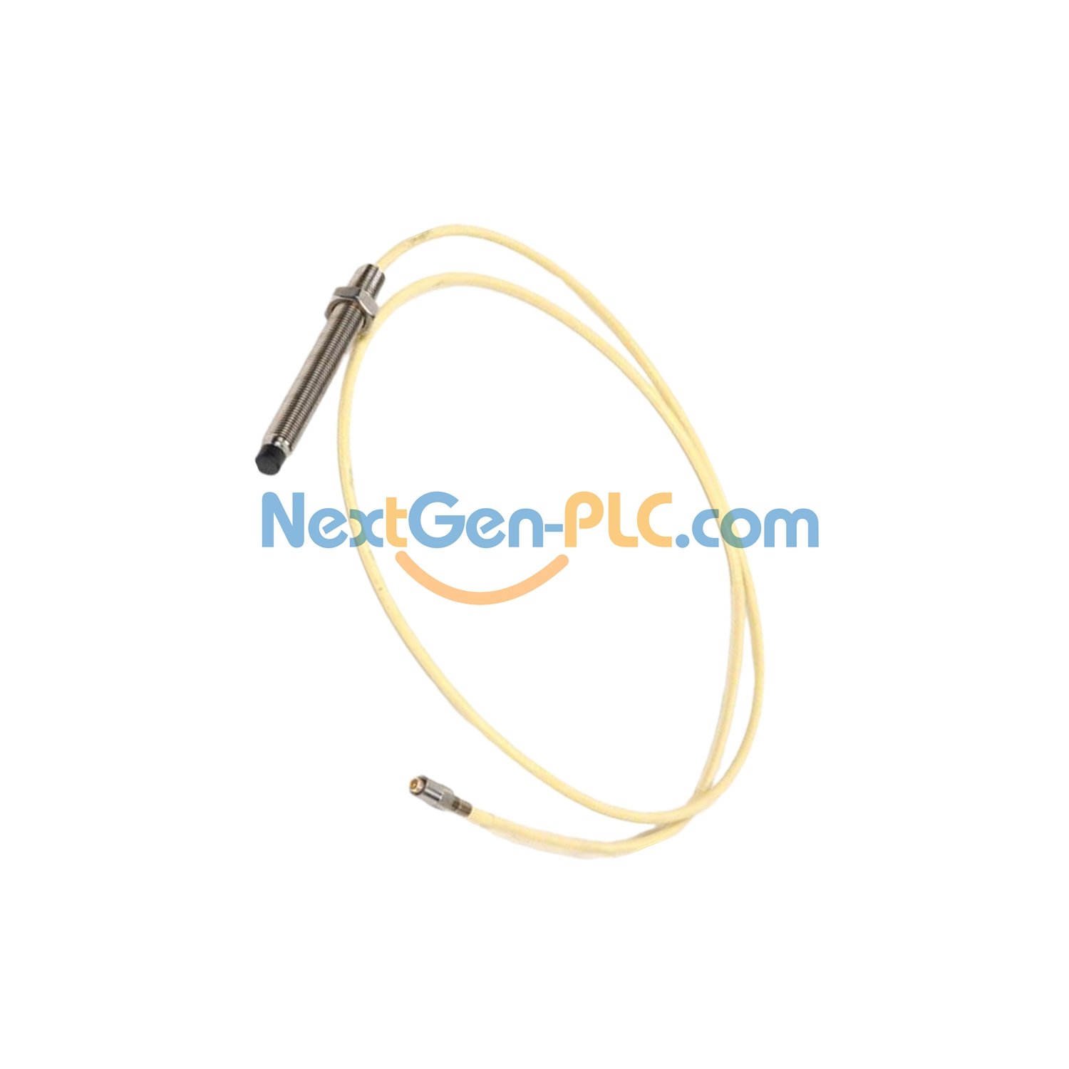 A new, factory-sealed vibration sensor from Bently Nevada. Used to measure machine vibrations in industrial settings. Ready to install straight from the package.